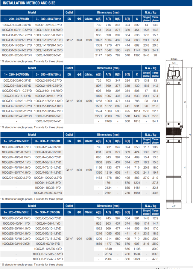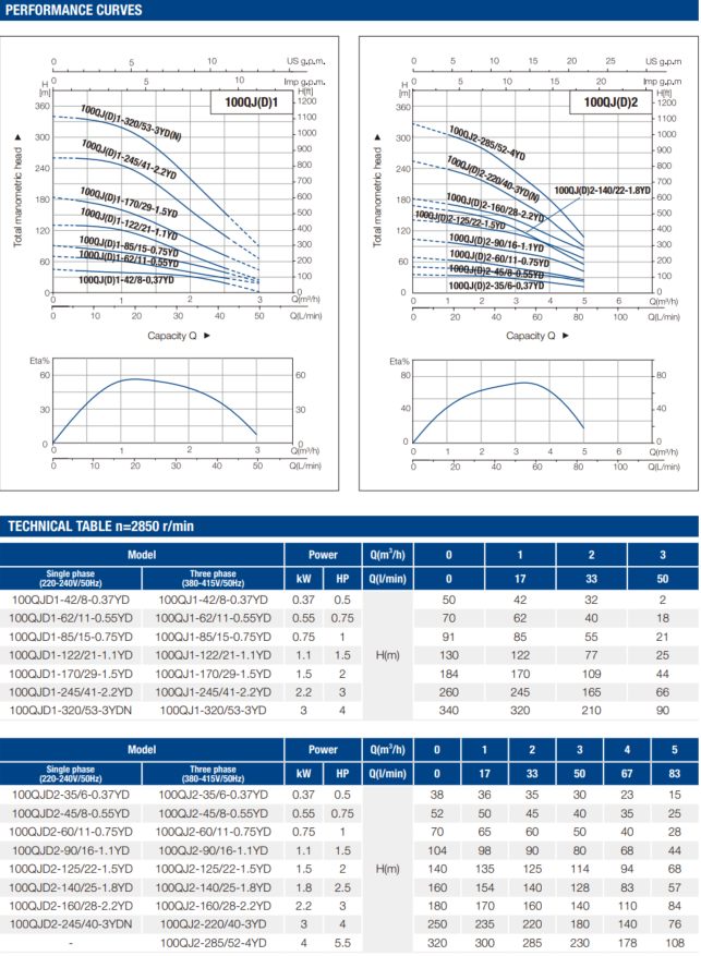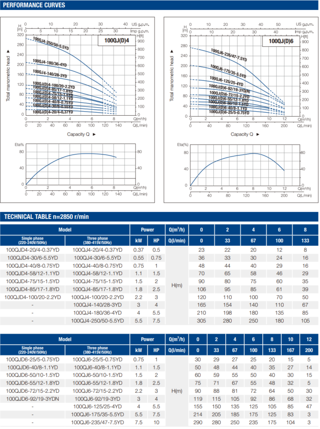 100QJ(D)-YD 1/2/4/6 Borehole Pump
