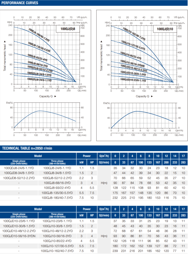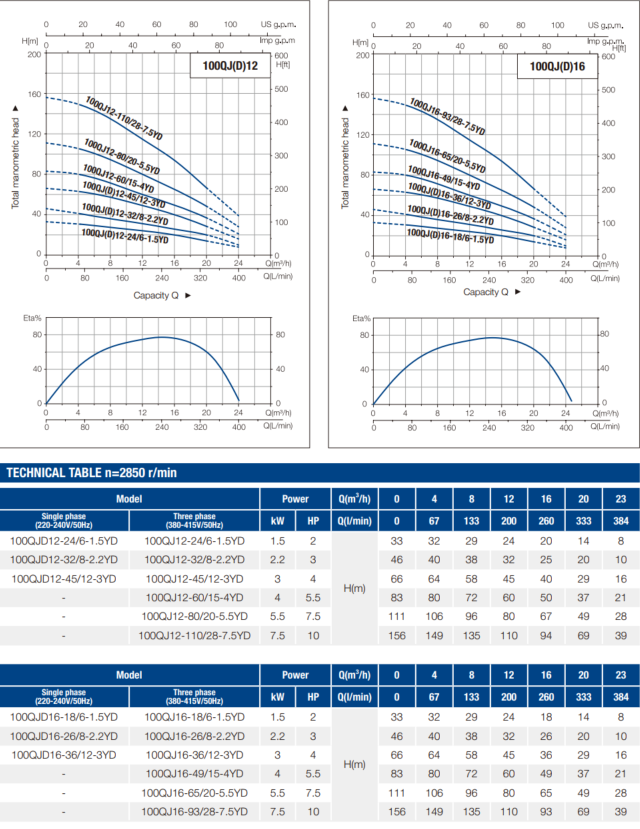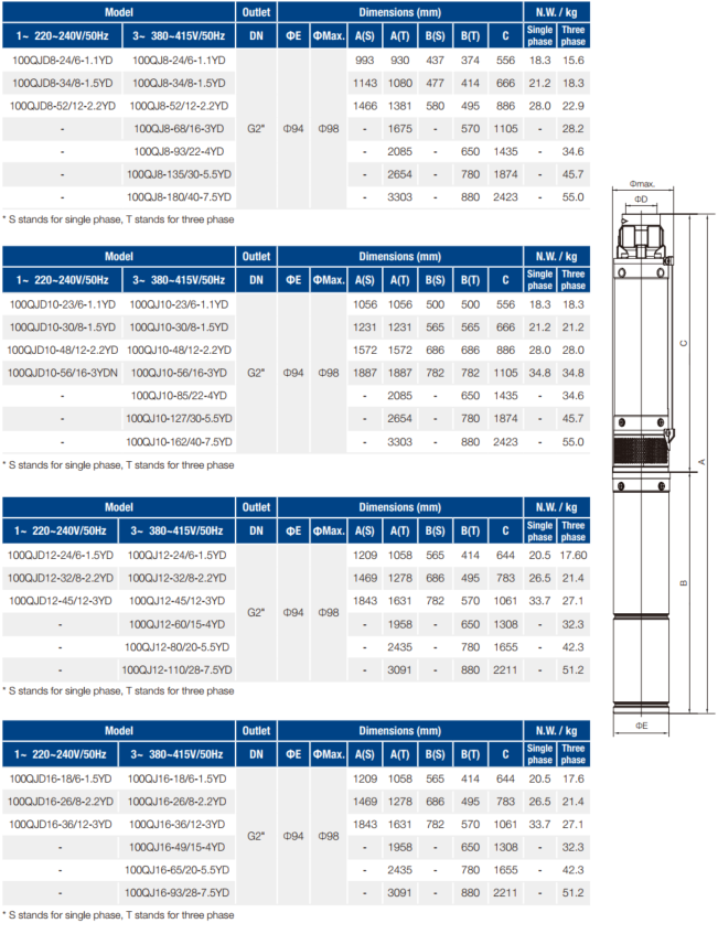 100QJ(D)-YD 8/10/12/16 Borehole Pump