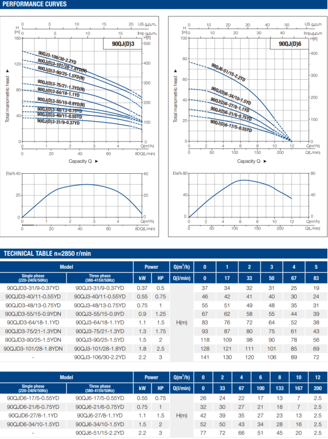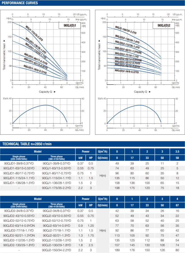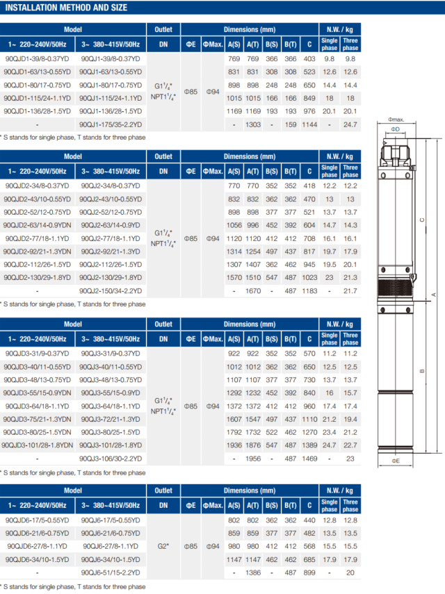 DAYUAN 3Dm2/ 3Dm3/ 3Dm4 Borehole Pump from 0.37-2.2Kw/ Max. flow 5m³/h, Max. head 191m, Price from