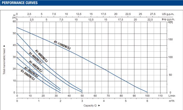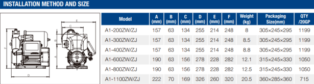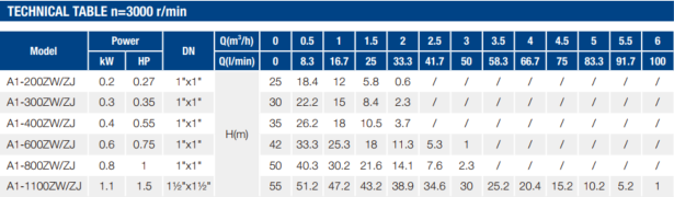 DAYUAN A1-ZW Self-priming Vortex Pump from 0.2-1.1Kw/ Max. flow 6m³/h, Max. head 55m, Price from