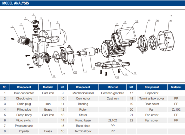 DAYUAN DCm-C Centrifugal Pump from 0.37-2.2Kw/ Max. flow 9m³/h, Max. head 45m, Price from
