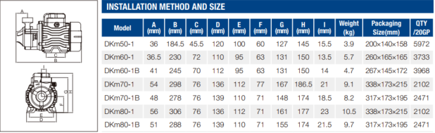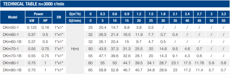 DAYUAN DKm-B Micro Peripheral Pump from 0.37-0.75Kw/ Max. flow 3.3m³/h, Max. head 65m, Price from