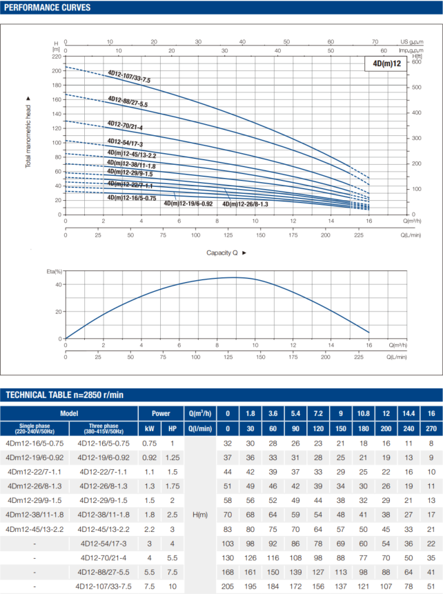 DM Deep Well Pump 4D(m)12 / 4D(m)16