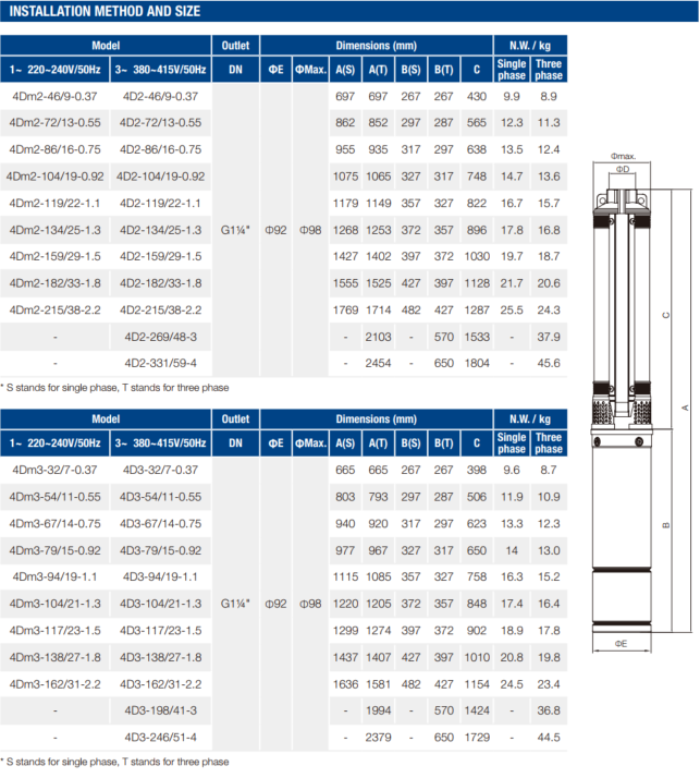 DAYUAN 3Dm2/ 3Dm3/ 3Dm4 Borehole Pump from 0.37-2.2Kw/ Max. flow 5m³/h, Max. head 191m, Price from