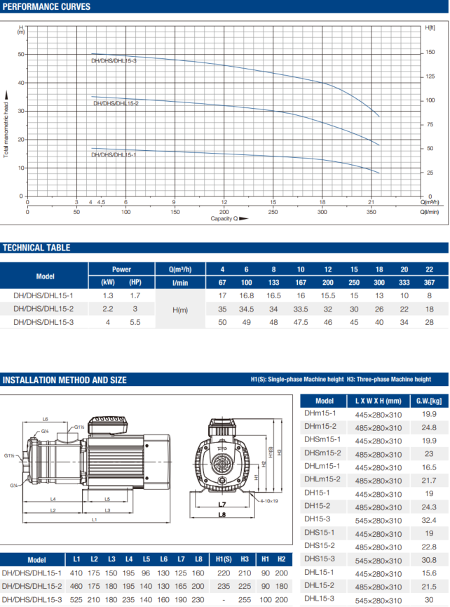 DAYUAN DCm-C Centrifugal Pump from 0.37-2.2Kw/ Max. flow 9m³/h, Max. head 45m, Price from