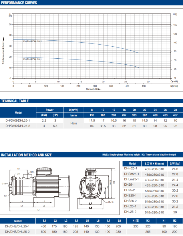 DH/DHS/DHL25 Series Stainless Steel Horizontal Multistage Pump