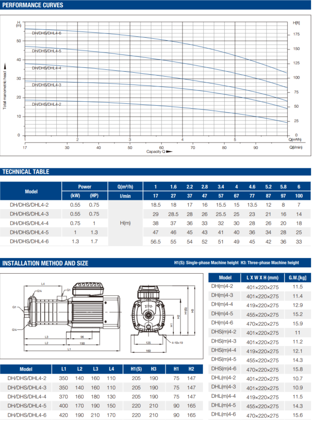 DH/DHS/DHL4 Series Stainless Steel Horizontal Multistage Pump