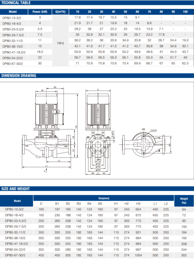 DAYUAN DCm-C Centrifugal Pump from 0.37-2.2Kw/ Max. flow 9m³/h, Max. head 45m, Price from