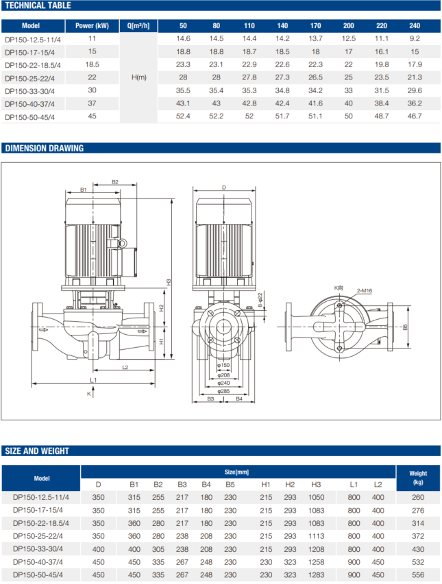 DAYUAN DCm-C Centrifugal Pump from 0.37-2.2Kw/ Max. flow 9m³/h, Max. head 45m, Price from