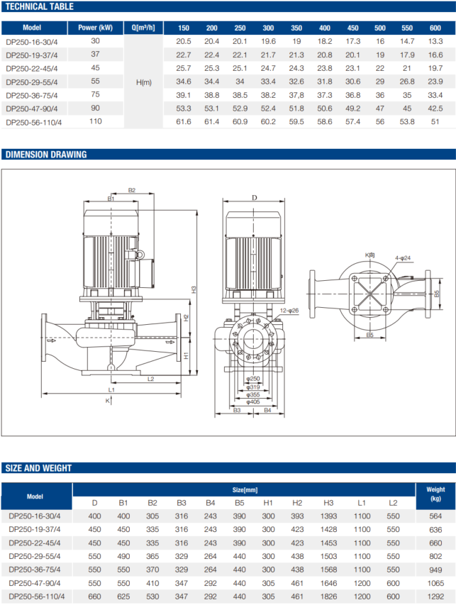 DAYUAN 4Dm2/ 4Dm3 Borehole Pumps from 0.37-4Kw/ Max. flow 5m³/h, Max. head 414m, Price from
