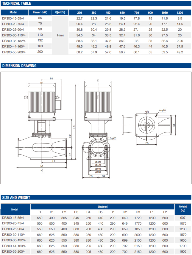 DAYUAN 4Dm2/ 4Dm3 Borehole Pumps from 0.37-4Kw/ Max. flow 5m³/h, Max. head 414m, Price from