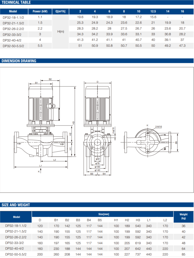 DP32 Vertical In-Line Pump