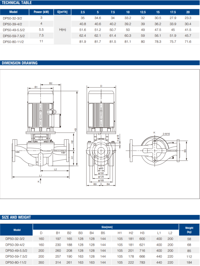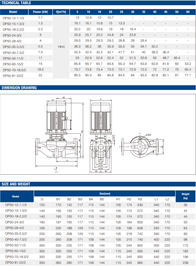DAYUAN DCm-C Centrifugal Pump from 0.37-2.2Kw/ Max. flow 9m³/h, Max. head 45m, Price from