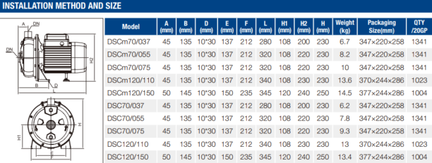 DAYUAN DCm-C Centrifugal Pump from 0.37-2.2Kw/ Max. flow 9m³/h, Max. head 45m, Price from