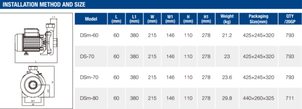 DAYUAN DCm-C Centrifugal Pump from 0.37-2.2Kw/ Max. flow 9m³/h, Max. head 45m, Price from