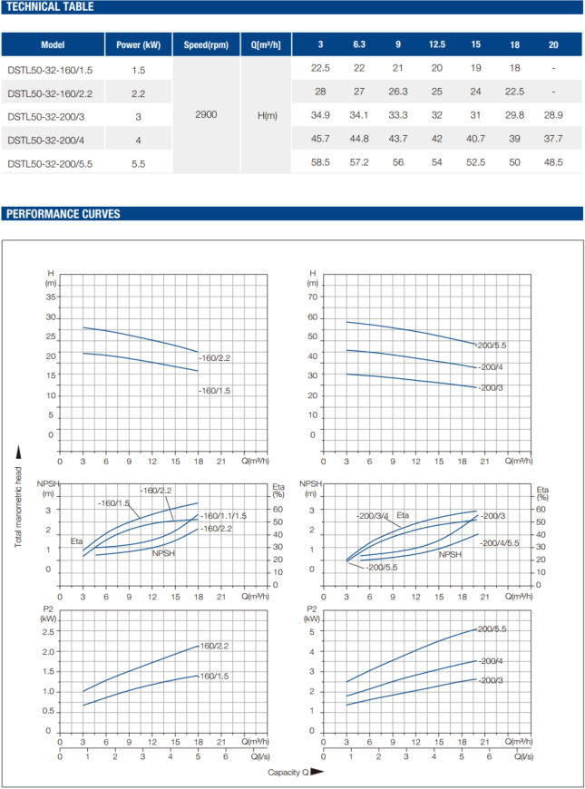 DAYUAN DCm-C Centrifugal Pump from 0.37-2.2Kw/ Max. flow 9m³/h, Max. head 45m, Price from