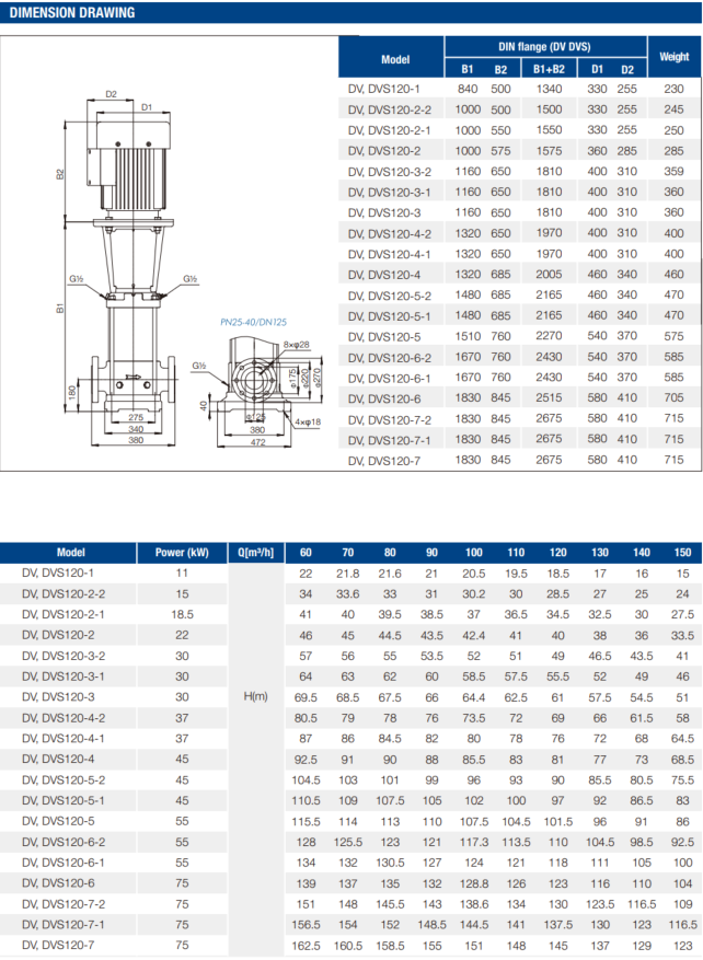 DV/DVS 120 Series Stainless Steel Vertical Multistage Pump