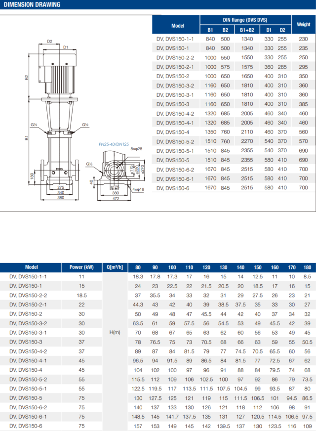 DV/DVS 150 Series Stainless Steel Vertical Multistage Pump