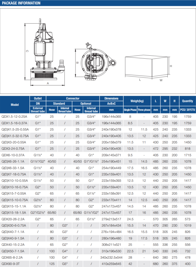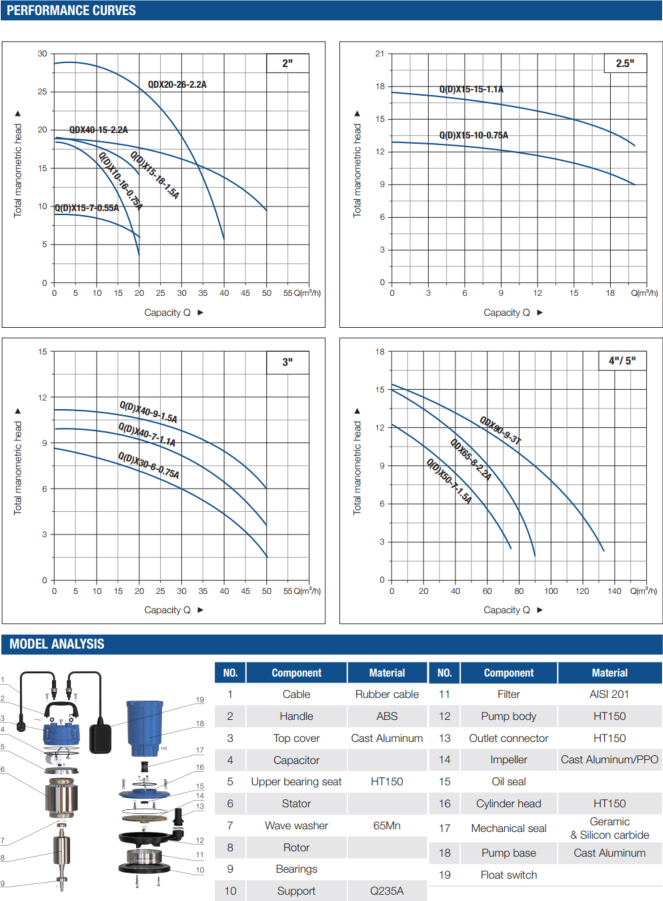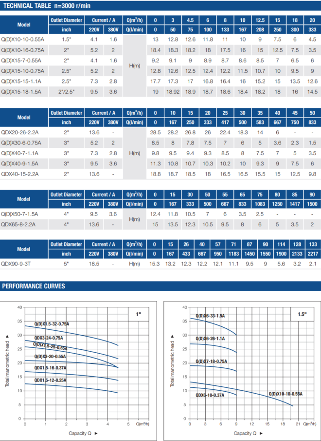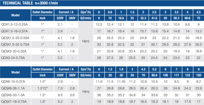 DAYUAN 3Dm2/ 3Dm3/ 3Dm4 Borehole Pump from 0.37-2.2Kw/ Max. flow 5m³/h, Max. head 191m, Price from