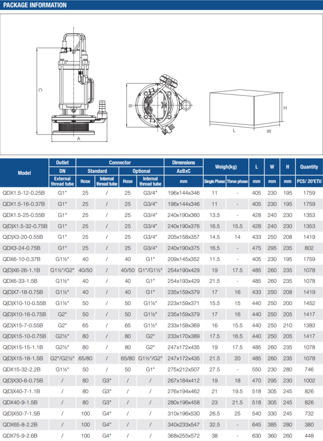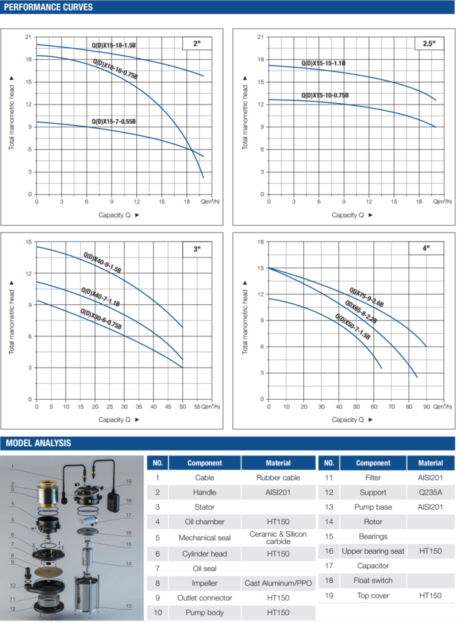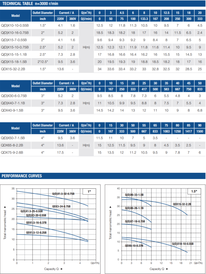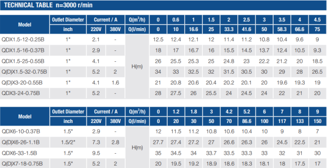 DAYUAN 3Dm2/ 3Dm3/ 3Dm4 Borehole Pump from 0.37-2.2Kw/ Max. flow 5m³/h, Max. head 191m, Price from