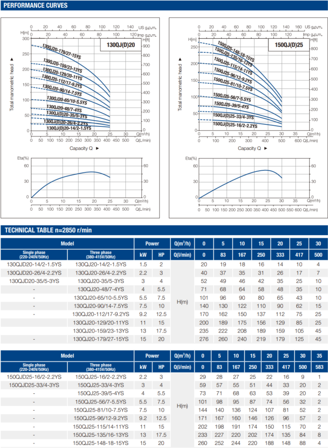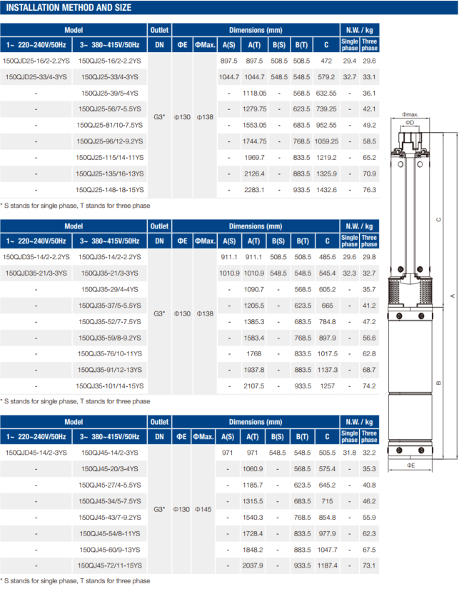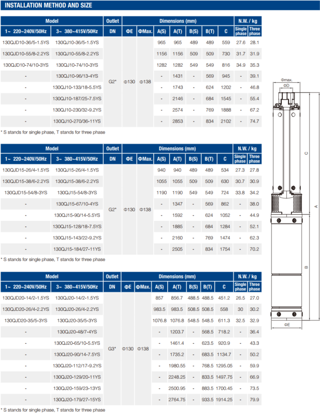 QJ(D)-YS Single Phase Stainless Steel Borehole Pump