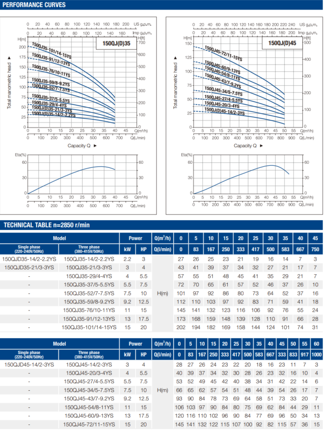 DAYUAN 4Dm2/ 4Dm3 Borehole Pumps from 0.37-4Kw/ Max. flow 5m³/h, Max. head 414m, Price from
