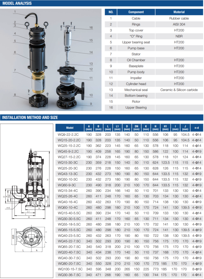 DAYUAN 3Dm2/ 3Dm3/ 3Dm4 Borehole Pump from 0.37-2.2Kw/ Max. flow 5m³/h, Max. head 191m, Price from