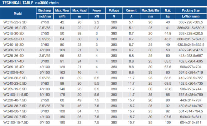 WQ-D Submersible Sewage Pump